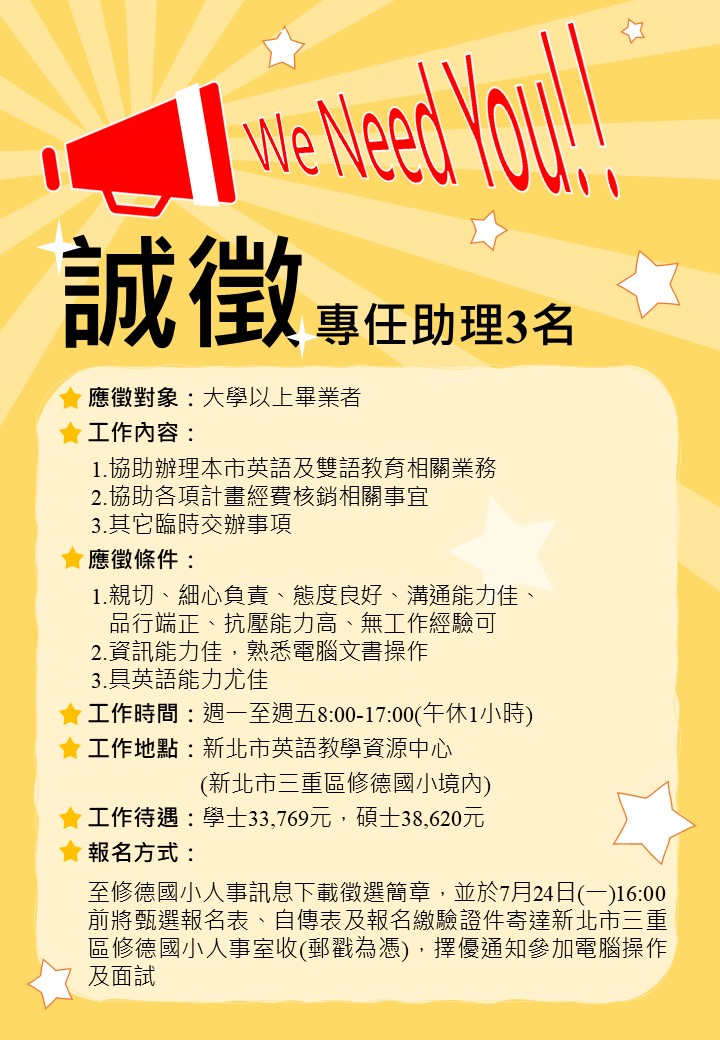 新北市英語教學資源中心 (修德國小境內:新北市三重區重陽路三段3號)。