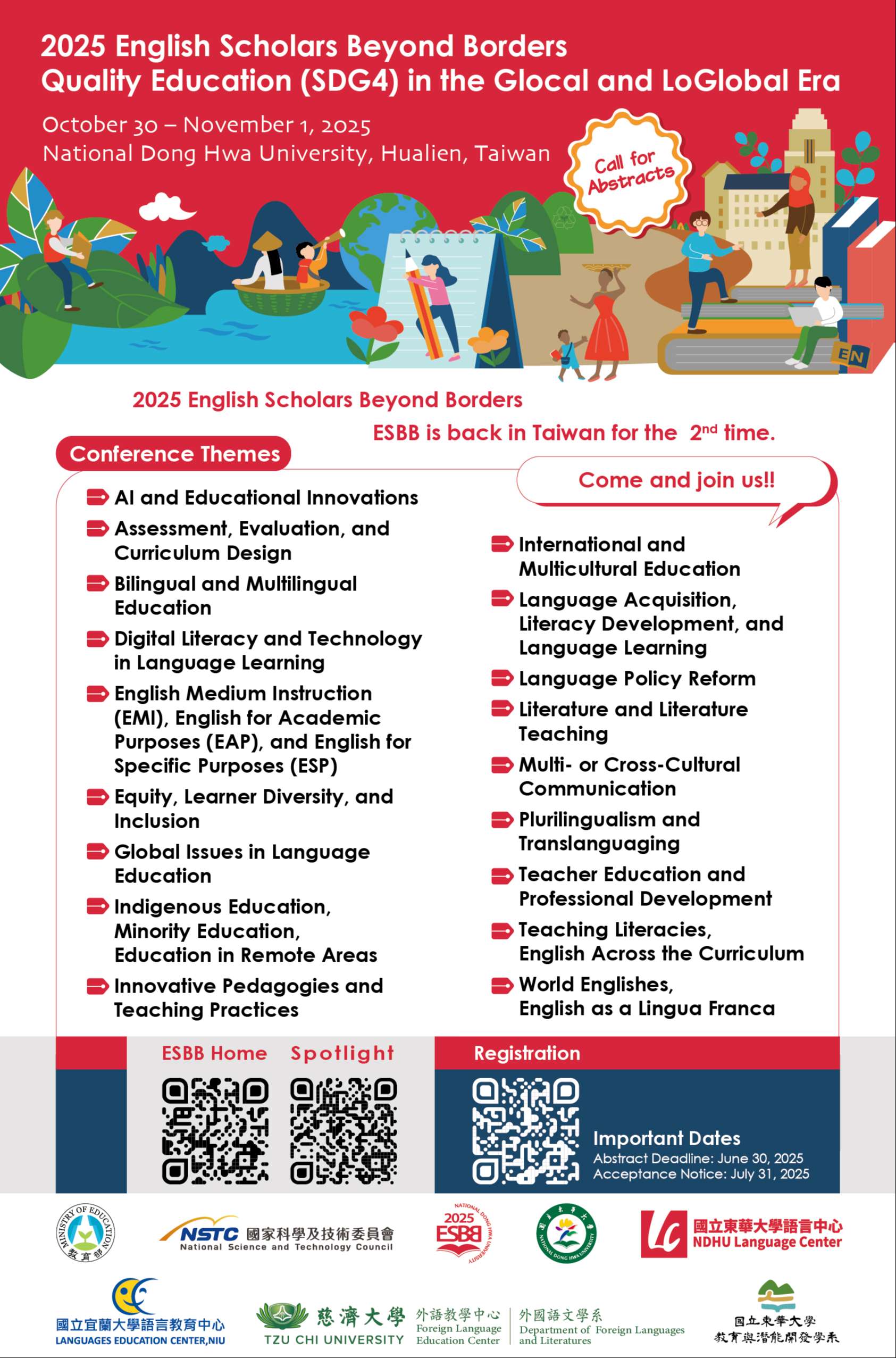 伍、徵稿海報詳如附件,研討會主題、投稿須知、報名等相關訊息,請至本研討會網址查詢:https://2025esbb.ndhu.edu.tw/